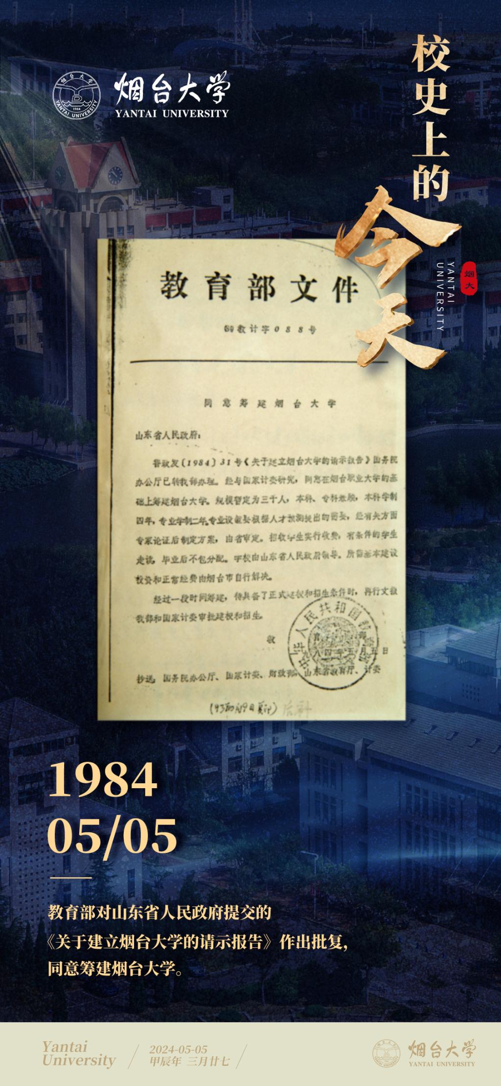 校史上的今天 | 1984年5月5日,教育部批復同意籌建煙臺大學
