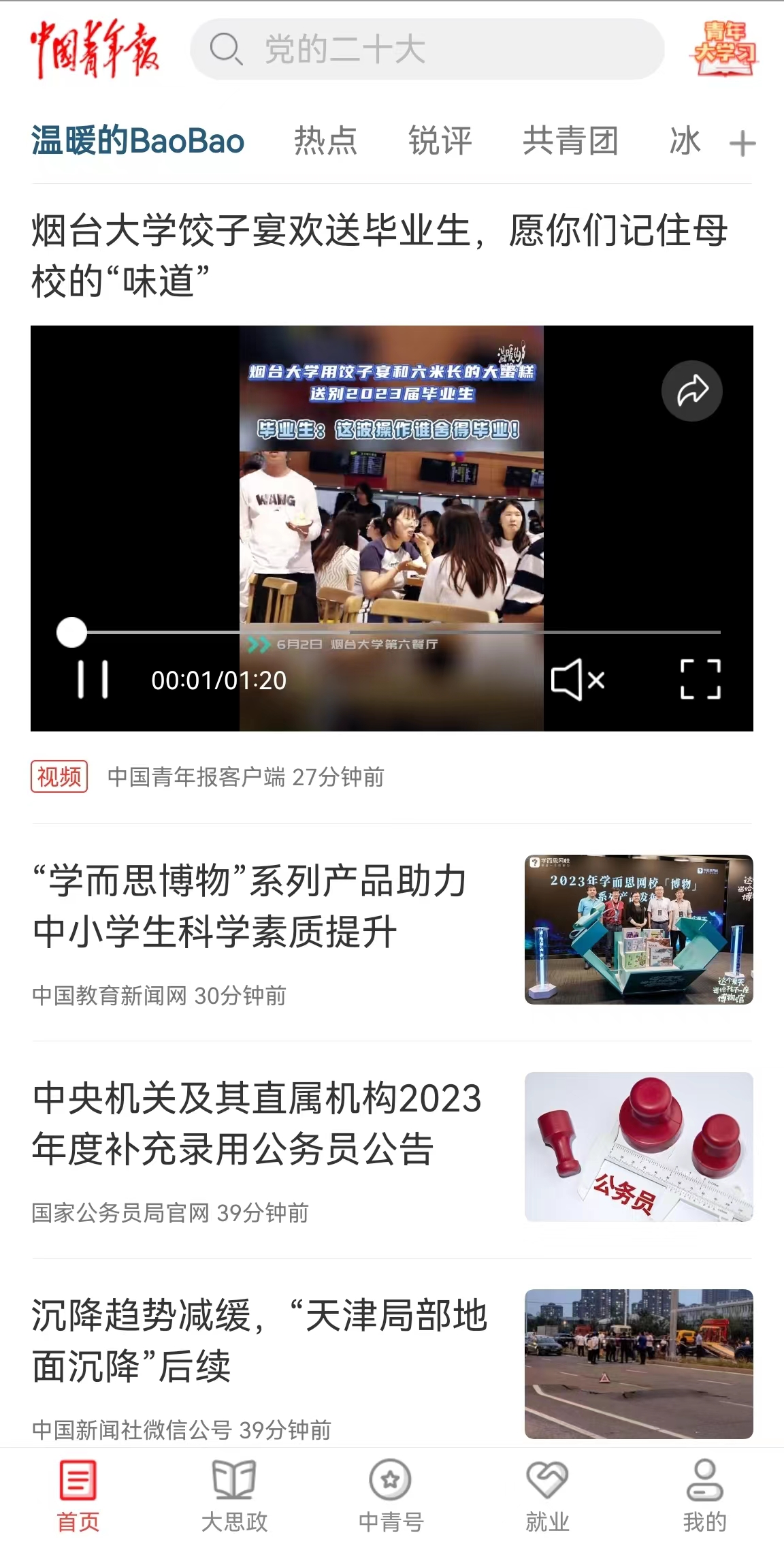 中國青年報客戶端首屏推薦