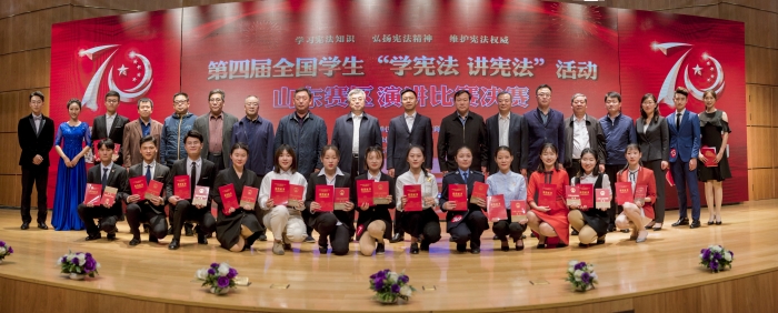 本次比賽分為主題演講和命題演講2個環節。第一環節,50名選手圍繞經弘揚憲法精神、樹立法治信仰開展主題演講,最終有16名選手突破重圍,進入命題演講決賽環節。經過激烈角逐,決賽分別決出高校組特等獎1名、一等獎6名、二等獎9名.來自煙臺大學的選手獲得特等獎,來自山東政法學院、濰坊理工學院、山東水利職業學院、曲阜師范大學、山東科技大學、山東科技職業學院的六位選手獲得一等獎。來自山東青年政治學院、濟南大學、山東司法警官職業學院、青島職業技術學院、山東師范大學、青島農業大學海都學院、山東工商學院、中國海洋大學、山東華宇工學院的九位選手獲得二等獎。