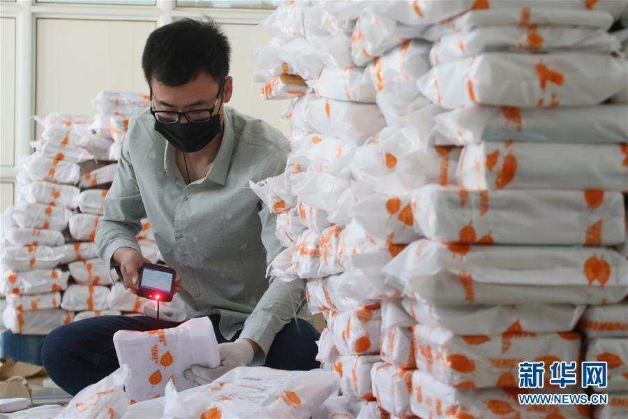 4月30日,在山東煙臺大學教材庫,工作人員在核對教材寄送信息。 連日來,山東煙臺大學與教材供應商和郵政部門密切配合,向1.9萬名學生寄送本學期紙質版教材,以最大限度降低新冠疫情對教學工作帶來的影響,方便學生在線學習和保障線上教學質量。據了解,本次教材總寄送量將達10萬冊,煙臺大學承擔全部郵寄費用。