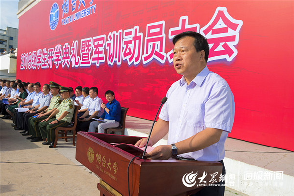 我向海而生,你為夢而來。9月2日上午,煙臺大學2019級學生開學典禮暨軍訓動員大會在體育場舉行。煙臺大學校長郭善利以《執好學之楫 揚夢想風帆》一文寄語新生。開學典禮結束后,7000余名新生迎來為期12天的軍訓。