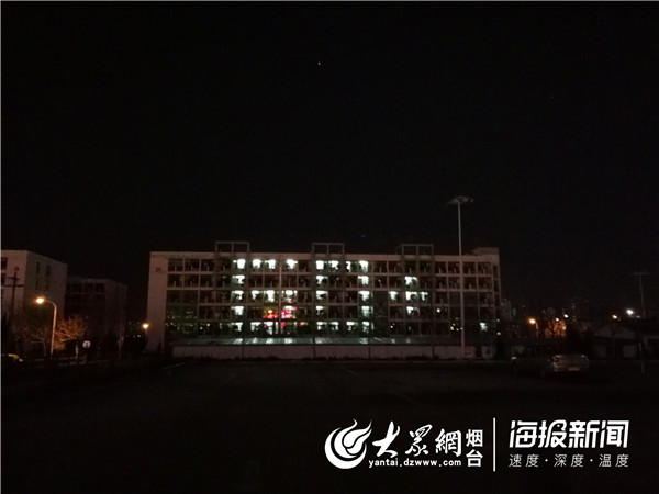 煙大宿舍樓用燈光拼出“EARTH(地球)”字樣