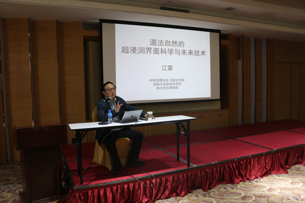 來訪期間,江雷院士面向煙大師生作了題為“原創科研的三個境界和八個層面”的學術報告。近百名師生現場參加,同步進行了網上直播。他結合自己回國二十多年來的科研經歷,聚焦“如何更好地進行原創科研”,提煉出原創科研選題的“三個境界和八個層面”:有所發現、有所發明和有所創造三個境界;改寫教科書、領域遺留挑戰、總結普適規律、研制先進儀器、研發關鍵技術、重視偶然發現、應用全新理論和生命啟發科研的八個層面,給師生做了精彩紛呈的報告,并與現場師生進行了交流。報告全程江雷院士旁征博引,既深入淺出,又發人深省,與會師生深受啟發,其“道法自然”的創新科研思路對廣大教師和同學的科研工作起到了很好的啟發和指導作用,大家紛紛表示報告開拓了學習視野和科研思路,獲益匪淺。