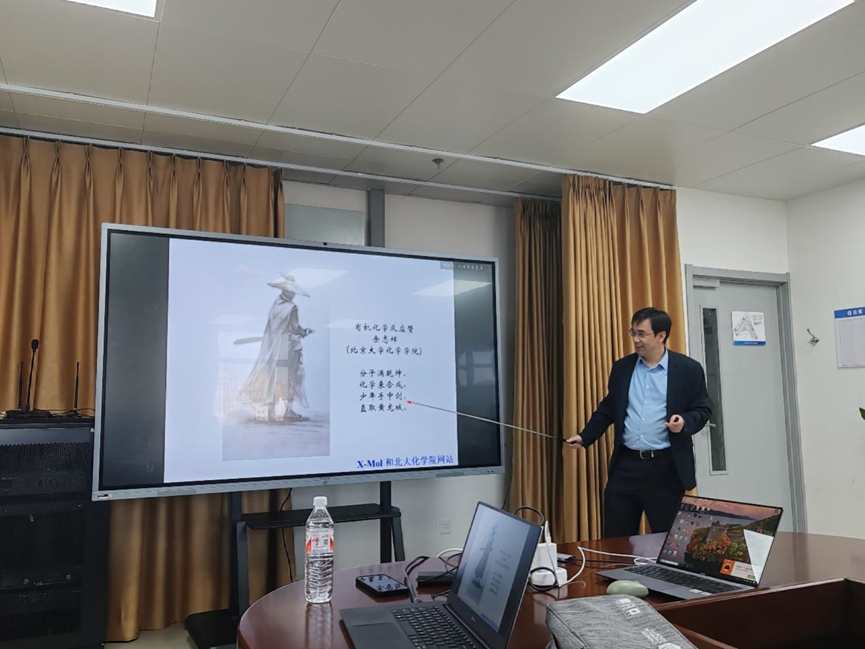 報告會上,現(xiàn)場的老師與學生就有關成環(huán)反應、天然產(chǎn)物合成、藥物合成中的問題與余志祥教授進行了交流和討論,現(xiàn)場學術氛圍濃厚熱烈。最后,余教授將“千溝萬流雖幸苦,吹盡狂沙始到金”這句古典名句贈與在場各位科研人,并鼓勵各位煙大青年教師和學子堅持理想,腳踏實地,立志報效祖國。