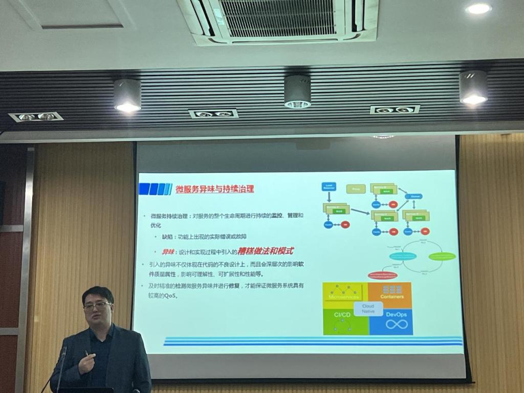 涂志瑩在報告中介紹了復雜軟件服務系統持續自主治理的重要性,詳細闡述了在異味檢測與健康度評估方面的最新研究進展。涂志瑩強調,通過對軟件系統的持續監測和分析,可以及時發現潛在的問題,從而提高系統的穩定性和可靠性。此外,他還分享了關于服務系統自編程框架的研究成果。報告會后,三位專家與在場的師生就相關領域的問題進行了深入探討和交流。