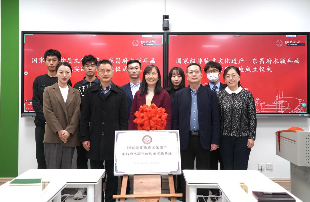 【本站訊】為弘揚中華優秀傳統文化,響應非物質文化遺產進校園的號召,11月3日,國家級非物質文化遺產東昌府木版年畫非遺傳承實踐基地在煙臺大學成立。聊城市東昌府區文化和旅游局,煙臺大學非物質文化遺產研究中心、校團委、中德特里爾學院主要負責人,東昌府木版年畫區級傳承人、學院2022級研究生黃輝參加本次活動。