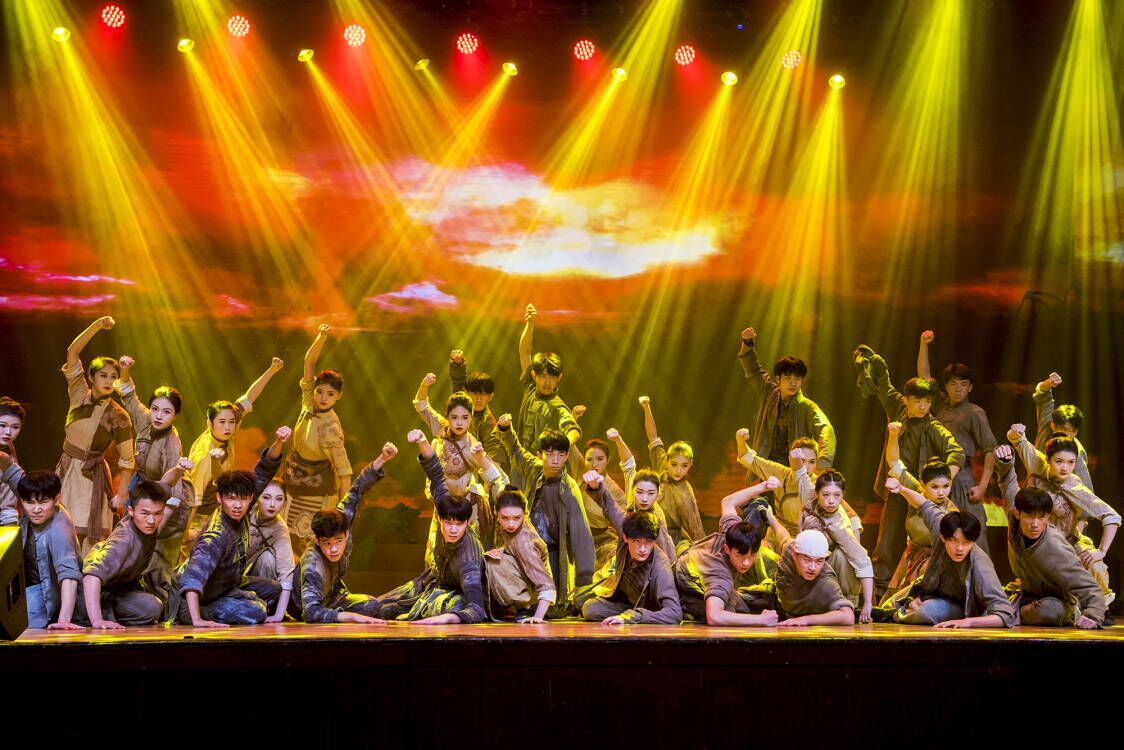 第三篇章中,男高音獨唱《祖國萬歲》高亢嘹亮,贊美祖國慈祥母親,歌唱祖國萬歲。民樂合奏《象王行》雄渾震撼,鼓點密集,帶領觀眾共同感受中華傳統文化之美。歌曲《把一切獻給黨》唱出人們對黨忠誠不渝,對信仰矢志不移,甘愿為了理想奉獻青春、奉獻生命的堅定信念和滿腔豪情。舞劇《地雷戰》深情謳歌了齊魯兒女在中國共產黨領導下的不屈斗志與家國情懷,鼓舞廣大師生賡續紅色血脈。“偉大的中國共產黨!乘風破浪,揚帆遠航,領航中國在新時代的征程上……”高亢激昂的《領航》歌聲響起,帶領全場觀眾走過中國共產黨百年光輝歷程,唱響領航新征程、奮進譜華章的主旋律。