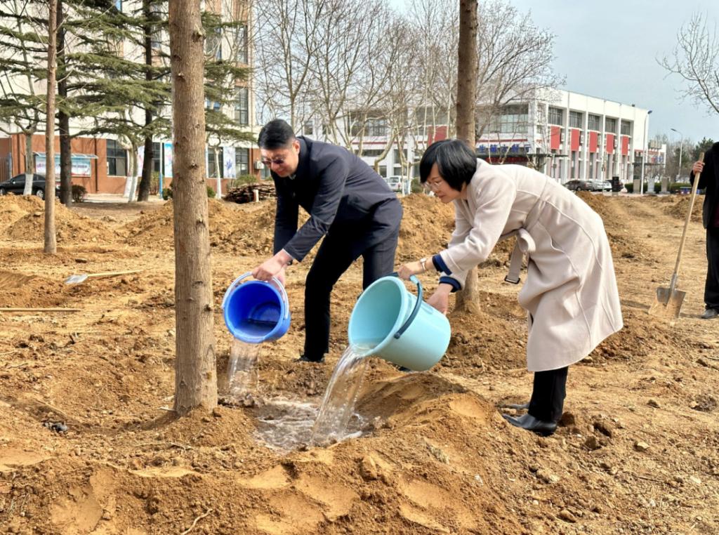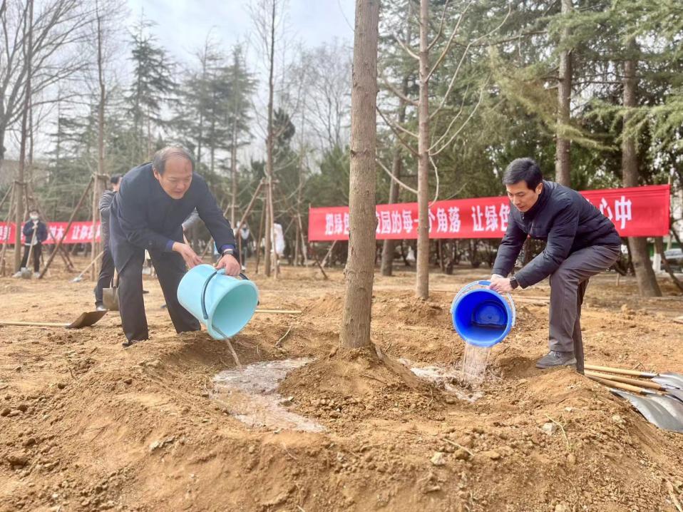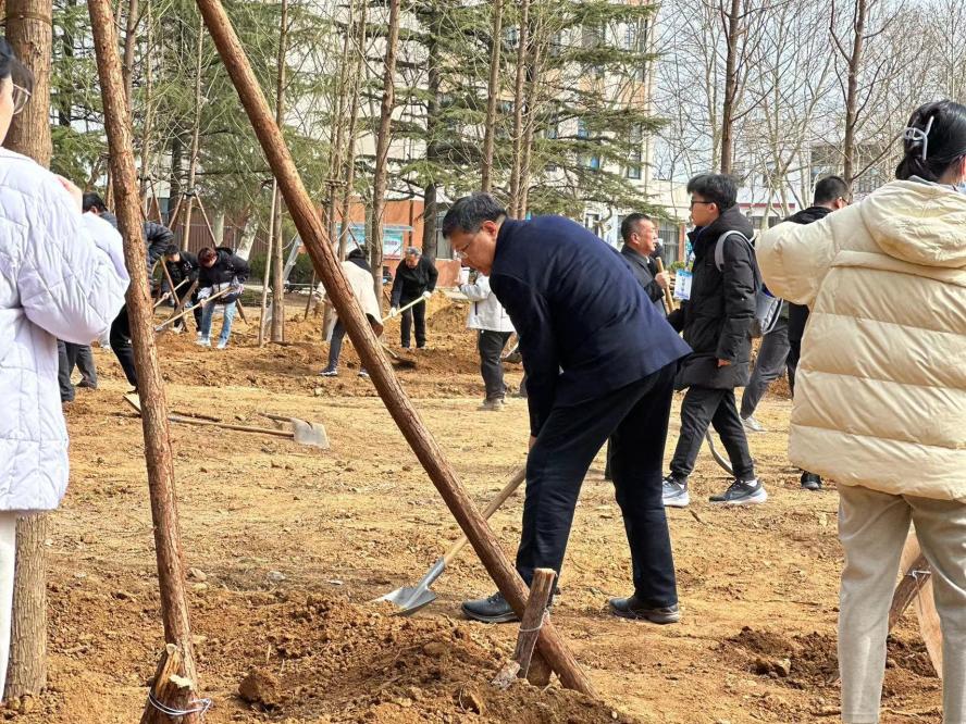 【本站訊】春風(fēng)催新綠,植樹正當(dāng)時(shí)。3月17日上午,煙臺(tái)大學(xué)在土木工程學(xué)院北側(cè)小樹林區(qū)域開展植樹活動(dòng),學(xué)校黨委副書記郭建國(guó),黨委常委、副校長(zhǎng)宋中民、郝曙光、王強(qiáng)、馮素玲,黨委常委、組織部部長(zhǎng)王澤光,黨委常委、宣傳部部長(zhǎng)于秀國(guó)與機(jī)關(guān)黨政干部、各學(xué)院師生代表、離退休教職工、后勤服務(wù)人員等百余名師生共同參加活動(dòng),用雙手為校園播種綠意。