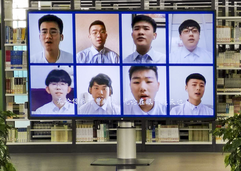 開幕沙龍上,圖書館館長任匯江和化學(xué)化工學(xué)院黨委副書記胡大鵬代表承辦單位分別介紹了本屆讀書節(jié)的相關(guān)活動,化學(xué)化工學(xué)院教師代表李桂芝和圖書館教師代表侯玉萍各自為在線學(xué)生推薦分享了兩部經(jīng)典書籍和影片,第十六屆讀書節(jié)的讀書之星、人文學(xué)院莊丹作為學(xué)生代表分享了自己的閱讀經(jīng)歷與感悟?,F(xiàn)場還播放了由各學(xué)院學(xué)生代表組成煙臺大學(xué)“領(lǐng)讀者”團(tuán)隊原創(chuàng)的云端接力朗誦短視頻《書香家國情》,以及音樂舞蹈學(xué)院與化學(xué)化工學(xué)院學(xué)子共同線上合唱MV《讓世界充滿愛》,表達(dá)了為中華之崛起而讀書的志愿和期待人類團(tuán)結(jié)一心讓世界更加美好的祝福。