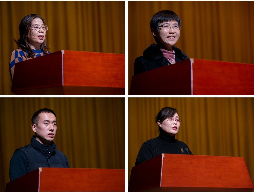 李桂芝老師以培養(yǎng)德才兼?zhèn)淙瞬拧⒆龊谜n堂規(guī)劃設(shè)計(jì)、加強(qiáng)教學(xué)交流研討、關(guān)心愛護(hù)學(xué)生四個(gè)方面總結(jié)了自己23年的煙臺(tái)大學(xué)教書育人生涯,生動(dòng)描繪出教師是天底下最崇高的事業(yè)。張磊老師從關(guān)愛觸動(dòng)學(xué)生心靈、靈活運(yùn)用課堂教學(xué)、耐心為學(xué)生答疑釋惑三個(gè)視角體現(xiàn)出她保持初心、用愛堅(jiān)守的教學(xué)歷程。李瑞老師以牢固樹立以師生為中心的全方位服務(wù)理念,努力做講政治、重公道、業(yè)務(wù)精、作風(fēng)好的辦公室工作人員為出發(fā)點(diǎn),生動(dòng)詮釋機(jī)關(guān)干部政治強(qiáng)、業(yè)務(wù)精,作風(fēng)正、紀(jì)律嚴(yán)、勇于擔(dān)當(dāng)、樂于奉獻(xiàn)的工作作風(fēng)。李魯紅老師從管理育人、服務(wù)育人、履職奉獻(xiàn)三個(gè)維度生動(dòng)闡釋了一位后勤人的踏實(shí)勤奮、默默耕耘。他們的先進(jìn)事跡充分體現(xiàn)了廣大教職工堅(jiān)定理想信念、堅(jiān)守初心使命、敢于直面困難、勇于擔(dān)當(dāng)作為的模范品格。