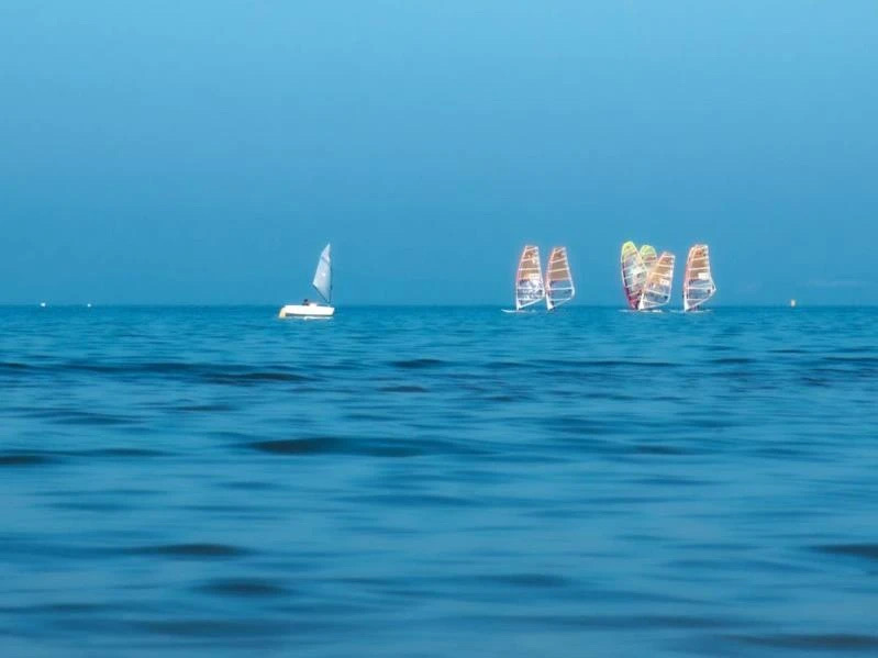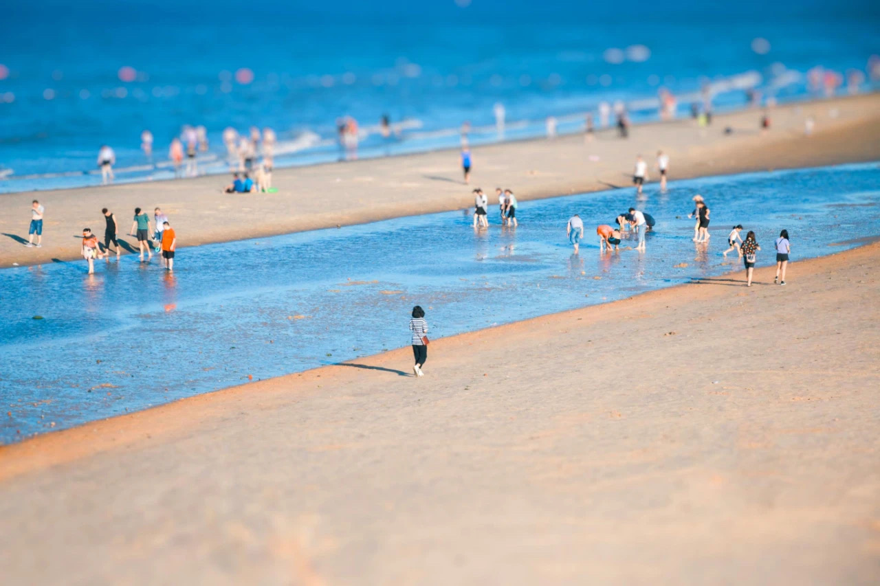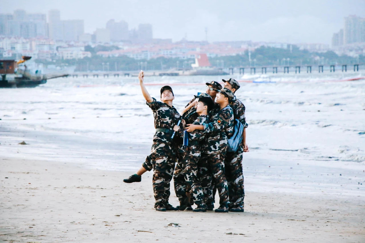 東門出去便是又白又細的海沙鋪就的海灘。綿延200多米處,便是湛藍無際、海天相連的黃海。海岸線上,散布著一些五、六十年代修建的國防戰備碉堡,有一個殘疾人福利加工廠,還有初家鎮和清泉寨、埠嵐、孫家灘等村的養殖場,以及許多漁民打魚、養殖用的各種設施。漁民們早出晚歸,海上養殖,打魚捕蝦,就在海邊出售自己剛剛捕獲上岸的新鮮魚蝦、貝類等各種海鮮,也在海邊編織漁網,晾曬魚干、海帶,加工扇貝、海虹,初陽與落日下,呈現出一幅幅歡樂忙碌、溫馨宜人的漁家豐收圖。師生們或清晨即起,迎著初升的太陽在柔軟的海灘上晨練;或待午后暑熱散去后,換一身泳衣,赤腳走過沙灘,躍入海中,讓身心愜意地接受著清涼海水的撫慰;或在夜幕降臨后漫步海邊,伴著潮起潮落大海的沉穩呼吸,卸除一天學習工作后的疲憊。