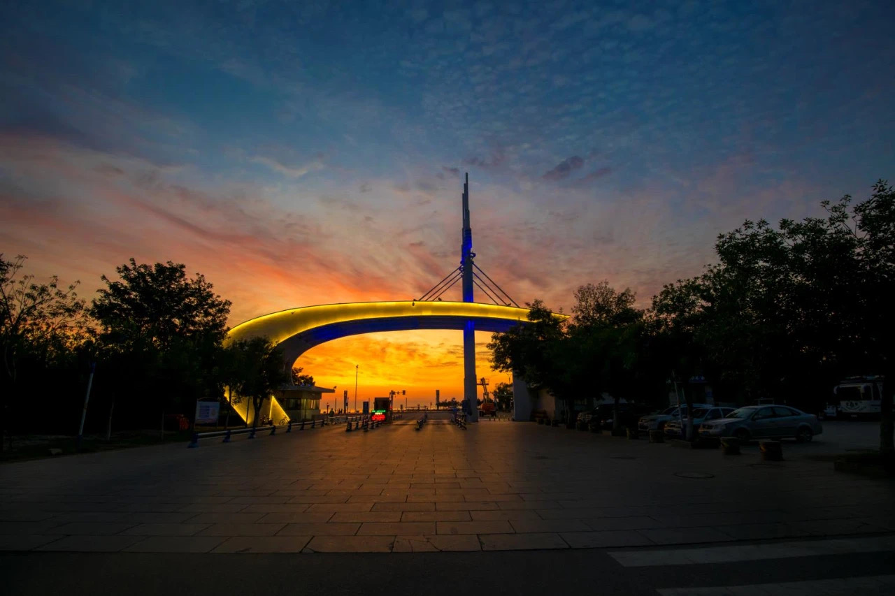 與新大門配套,還鋪設了東門內側小廣場,拓寬了東大門外通濱海路路段。東大門工程于2004年“五一”完工,為10月舉行的20周年校慶獻上一處新景。近幾年,地方政府實施海邊景點亮化美化工程,夜幕下的東門外海濱增添了一道道奪目光彩。海洋觀光旅游資源的開發,使東大門外海岸已然成為帆船、垂釣、游泳、沙灘排球等各種海上體育游樂項目,以及青年人結婚攝影的最佳所在。過往的各方游客紛紛“打卡”駐足,或以東門為背景拍照留念,或在匆匆駛過的外地旅游大巴上投來驚羨的一瞥,留下對這所“離海最近”大學的美好印象。