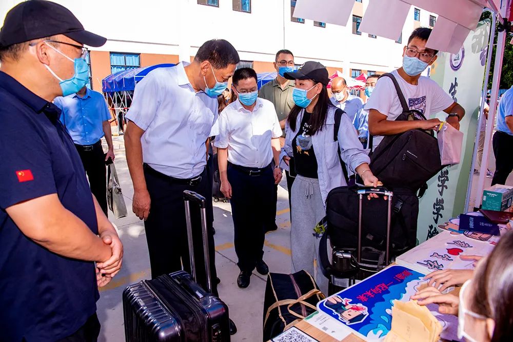 “咱們學院目前報到情況怎么樣?”“同學,你家是哪的?”“對學校的第一印象怎么樣”……8月24日上午,煙臺大學黨委書記張殿臣,校長段培永,黨委副書記郭建國,副校長郝曙光、畢可志及相關部門負責人來到研究生新生報到處,親切慰問入學新生及迎新工作人員。學校領導指出,研究生迎新工作是展現(xiàn)學校育人理念、管理水平和服務能力的重要窗口,各部門要以高度的責任感做好迎新各項工作,熱心、耐心、細心服務每一位研究生新生,讓同學們感受到家的溫暖,同時要主動謀劃接下來的入學教育、專業(yè)認知等工作,幫助研究生新生盡快熟悉煙大、適應煙大、融入煙大。