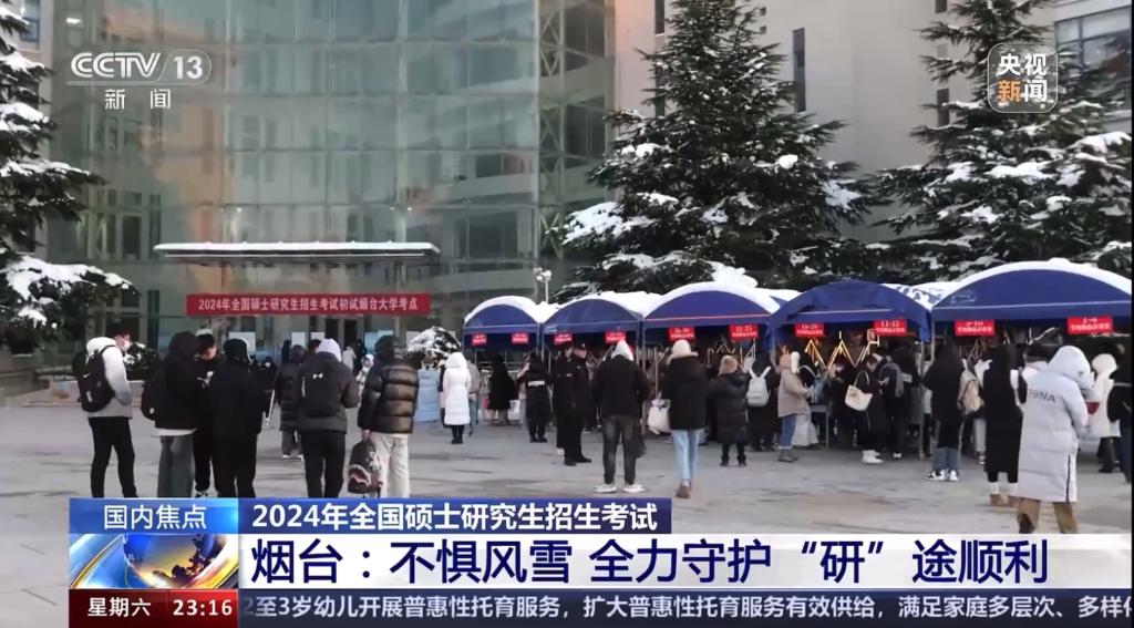 冬日的煙園,雪花紛飛,銀裝素裹。煙園的冬日,秩序井然,溫暖人心。12月23日,歷經強降雪天氣后的煙大校園正式迎來了2024年全國碩士研究生招生考試(初試)。學校各部門單位提前謀劃,協同聯動、不辭辛勞,用精準組織與暖心服務,“溫暖”打響了這場雪地上“研考仗”。