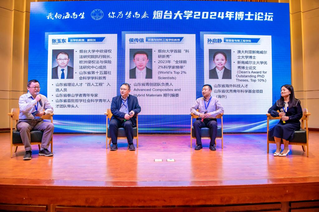 優秀青年教師蘊含著極大的發展潛力,其發展情況是學校人才師資隊伍活力的生動展現。博士論壇期間,由生命科學學院王緒敏教授主持,法學院張玉東教授、環境與材料工程學院侯傳信教授、核裝備與核工程學院孫啟靜博士等優秀青年教師代表展開了一場別開生面的訪談交流,講述了“來到煙大、成長在煙大、成就在煙大”的熾熱情懷和寶貴經歷,博得了與會青年才俊的陣陣掌聲。