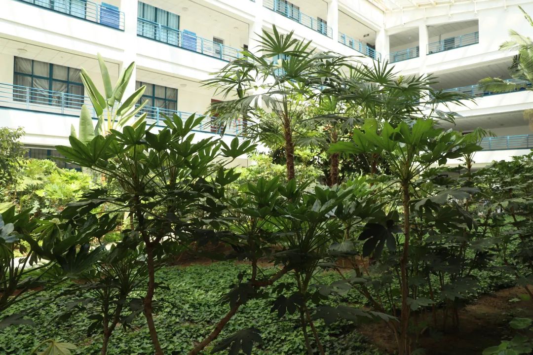 三分栽,七分養(yǎng)。養(yǎng)護工作對于綠化人來說是一項繁瑣的工作——澆水、施肥、修剪、除雜草、防治病蟲害等,每一件小事一年到頭,從未間斷。“剛來煙大工作的時候,這棵樹還沒有我半腰高?!睆埓骺粗矍耙呀涢L了10多米高的椰子樹不禁感慨道,“這里的一些植被和花種,是我從老家?guī)н^來的,看著它們從一棵棵小苗子一步步長大、開花、結果,給同學們的學習帶來更舒心的環(huán)境,內心覺得什么辛苦都值了?!鼻组L廊的“小植物園”時常會吸引到路過這里的師生?!懊看蝸砬组L廊上課,都會被這些花草所吸引,它們生機勃勃的樣子總會感染到我,讓我做事情更有動力?!蔽膶W與新聞傳播學院的夏孟吉說道。