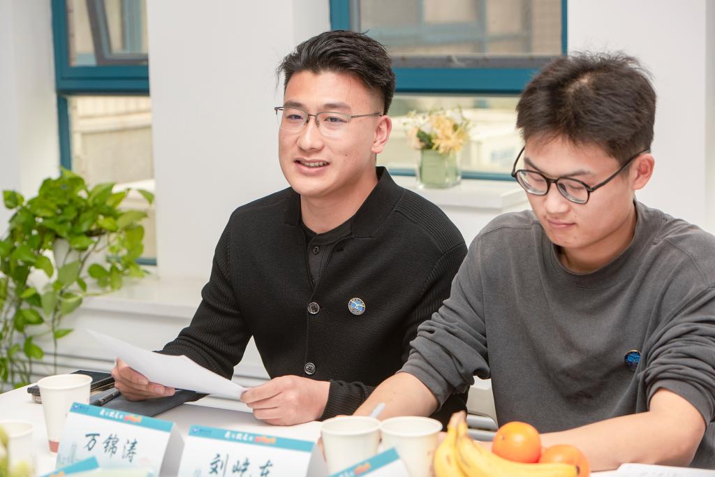 裊裊茶香中,來自15個學院的學生代表孫曉惠、胡婷婷、萬錦濤、喬嘉良、徐曉洋、王芊惠、王子文、吳寶發(fā)、鄭中瑋、王兆浩、劉屹東、楊亞欣、胡雅琦、王梓諭、高若晗圍繞“以奮斗與擔當書寫青春詩行”主題,敞開心扉、暢所欲言,分享了自己的學習體驗和美好憧憬,提出所思所盼和意見建議。