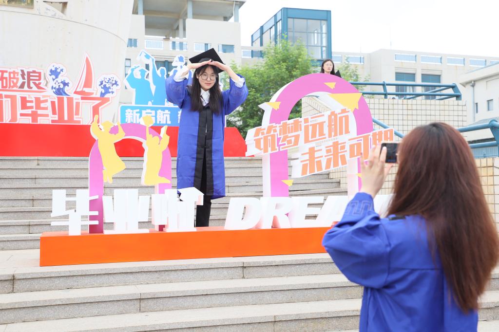 “來,看鏡頭!”“321,笑一個!”……畢業典禮現場,“海納百川,敢為人先”畢業生照片墻、“夢起煙大,不負韶華”“筑夢遠航,未來可期”“不負熱愛,奔赴山海”主題打卡板吸引了眾多畢業生拍照留念。盛夏的煙園中,笑語與歡聲交織,笑顏與荷花相映,煙大學子即將遠航的蓬勃青春沖淡了離別愁緒,他們將在未來的夢想征途上直掛云帆,滿懷期待地奔赴新的星辰大海。