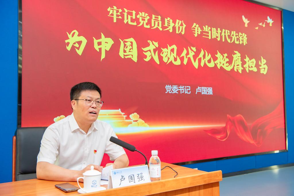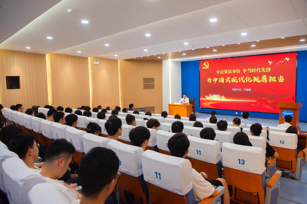 【本站訊】“我們處在一個(gè)偉大的時(shí)代,一個(gè)充滿機(jī)遇和挑戰(zhàn)的時(shí)代。如何以不變應(yīng)萬變,把握機(jī)遇,不負(fù)韶華,筑夢(mèng)未來。我想,就圍繞‘中國共產(chǎn)黨黨員’的身份,談?wù)務(wù)J識(shí)與體會(huì)……”7月10日下午,一堂生動(dòng)深刻的專題黨課在承先圖書館報(bào)告廳開講。黨委書記盧國強(qiáng)以“牢記黨員身份,爭(zhēng)當(dāng)時(shí)代先鋒,為中國式現(xiàn)代化挺膺擔(dān)當(dāng)”為題講授專題黨課。黨委組織部、黨委學(xué)工部主要負(fù)責(zé)人,各學(xué)院黨組織副書記、學(xué)生黨員和入黨積極分子代表聆聽黨課。