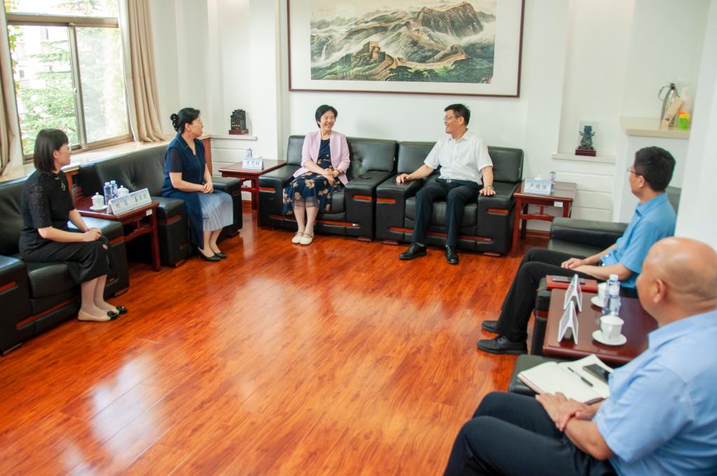【本站訊】7月15日下午,曲阜師范大學黨委副書記李志紅一行來??疾煺{研。黨委書記盧國強會見客人并座談交流。