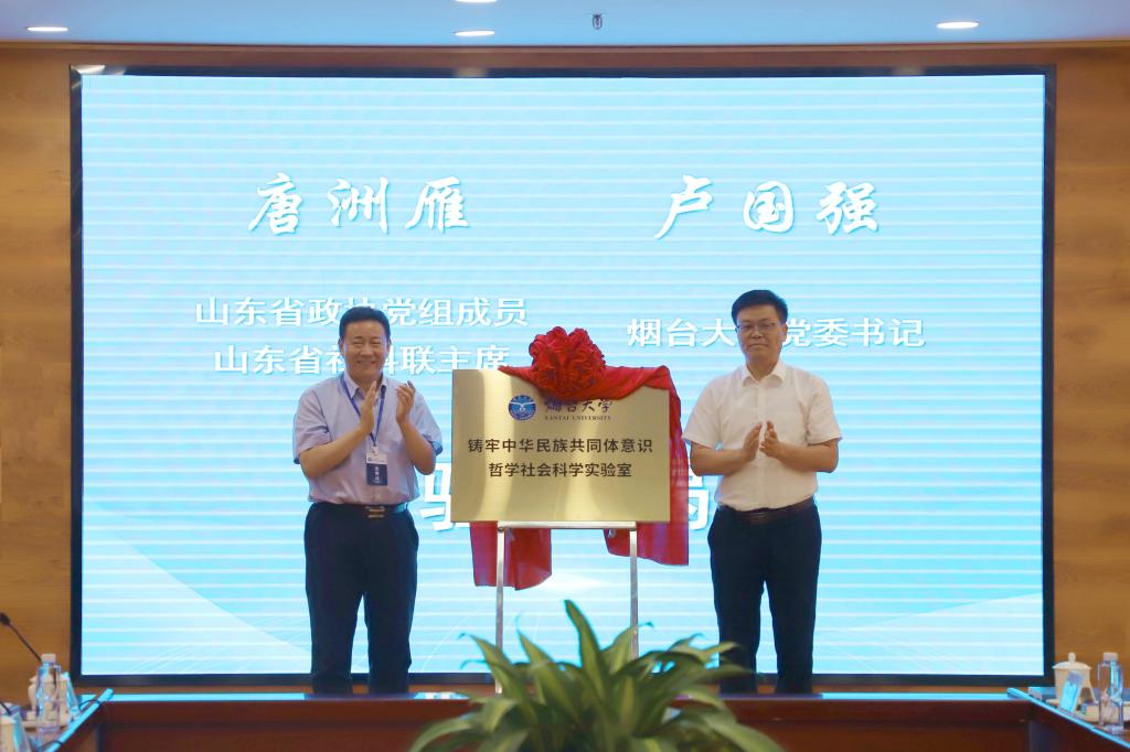 山東省政協黨組成員、省社科聯主席唐洲雁,山東省社科聯黨組書記、副主席劉為民,山東省民族宗教委黨組成員、副主任羅軍,內蒙古自治區社科聯黨組書記、主席烏恩奇,重慶市社科聯黨組書記、副主席李保海,新疆維吾爾自治區社科聯黨組書記、副主席盧春萍,甘肅省社科聯一級巡視員崔建偉,寧夏回族自治區社科聯黨組成員、副主席郭小濤,西藏自治區社科聯聯絡協調處副處長李國鋒,煙臺大學黨委書記盧國強,山東省社科聯黨組成員、副主席王坤,煙臺市委常委、宣傳部部長呂波,煙臺大學黨委常委、副校長馮素玲等出席活動;有關省(自治區、直轄市)社科聯、山東省直和煙臺市直部門單位負責人參加。會上,唐洲雁、盧國強共同為鑄牢中華民族共同體意識哲學社會科學實驗室揭牌,馮素玲代表學校與實驗室指導委員會成員單位簽署共建協議。來自省內外有關高校、科研機構的60余名專家學者,共同見證哲學社會科學實驗室成立。