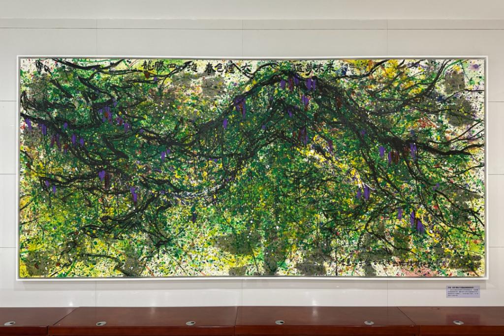 巨幅長藤蘿畫作 懸掛于承先圖書館