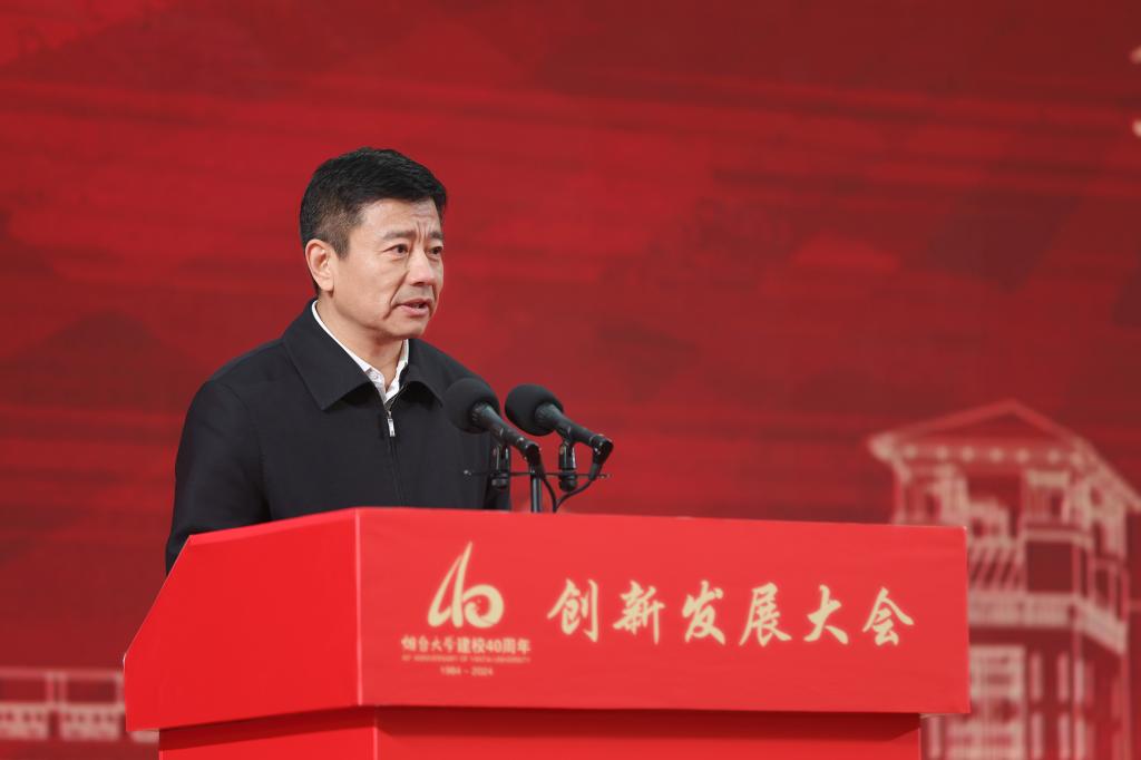 會上,江成代表市委、市人大常委會、市政府、市政協,向煙臺大學建校40周年、獲批博士學位授予單位,表示熱烈祝賀;向長期以來關心支持煙臺大學和煙臺發展的各位領導、各界人士,向北京大學、清華大學的傾力支援,表示衷心感謝。他指出,今年是煙臺大學建校40周年,也是煙臺獲批成為全國首批沿海開放城市40周年。回顧過去,煙臺大學自誕生之日起就與煙臺這座城市血脈相連、攜手并進,40年來始終以根植煙臺、服務煙臺為宗旨,為煙臺發展提供了強有力智力支持,創造了校地雙向奔赴、互促共贏的合作典范。江成強調,建設現代化城市必須有高水平大學作支撐,以煙臺大學為代表的駐煙高校,不僅是煙臺靚麗的城市名片,更是煙臺高質量發展的動力源泉。衷心希望煙臺大學扛牢培養高層次人才和服務高質量發展的歷史重任,熱切期望更多畢業生扎根煙臺創新創業,切實把學校的智力優勢轉化為煙臺的競爭優勢、發展勝勢。煙臺市將把支持服務學校建設與發展作為分內之事、應盡之責,傾力提供更加精準的政策扶持、更加充分的要素保障、更加優質的辦學環境,為煙臺大學跨越發展提供堅強后盾,為廣大師生成就美好未來搭建圓夢平臺。