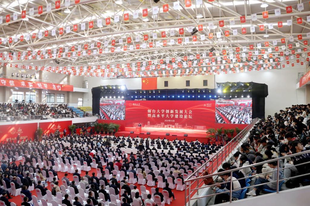煙臺大學黨委副書記、校長郝曙光作題為“勇擔時代使命 續寫四秩華章”的發展報告