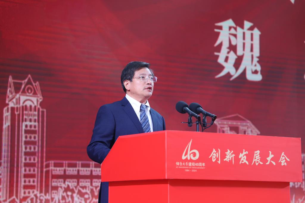 兄弟高校代表、青島大學校長魏志強,國(境)外友好院校代表、韓國檀國大學理事長張淏星分別致辭,祝賀煙臺大學40年來所取得的辦學成就,表示愿與煙臺大學在更廣范圍、更深層次、更高水平上深化合作、共謀發展。