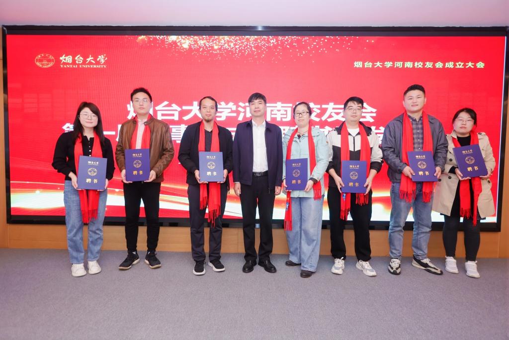 【本站訊】魯豫一家親,共續煙大情。10月26日,煙臺大學河南校友會在鄭州成立,學校原黨委書記張殿臣出席并為河南校友會授旗、授牌,黨委常委、副校長張獻勇致辭并頒發河南校友會第一屆理事會成員聘書和“校友之家”牌匾,河南省山東商會代表,兄弟校友分會代表,學校文學與新聞傳播學院、外國語學院、法學院、合作發展處、校友工作辦公室等單位負責人以及來自河南省各地市的煙大校友代表共30余人參加成立大會。大會由文學與新聞傳播學院2015級校友李奕萱主持。