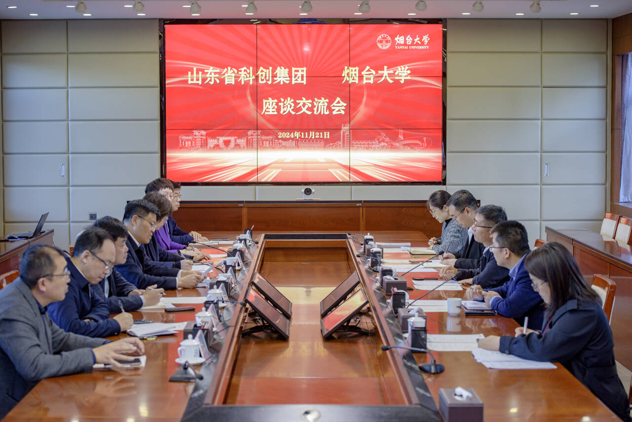 王建新對煙臺大學近年來高質量發展取得的成績給予了高度贊譽。他簡要介紹了山東省科創集團有限公司的發展歷程及近年來取得的業績成果,希望加強與煙臺大學的合作交流,實現合作共贏。