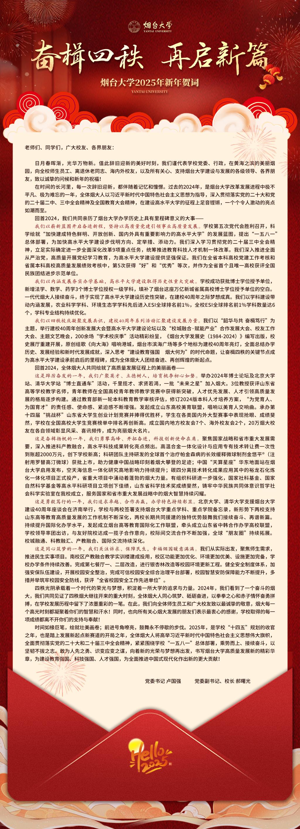 奮楫四秩 再啟新篇——煙臺大學2025年新年賀詞