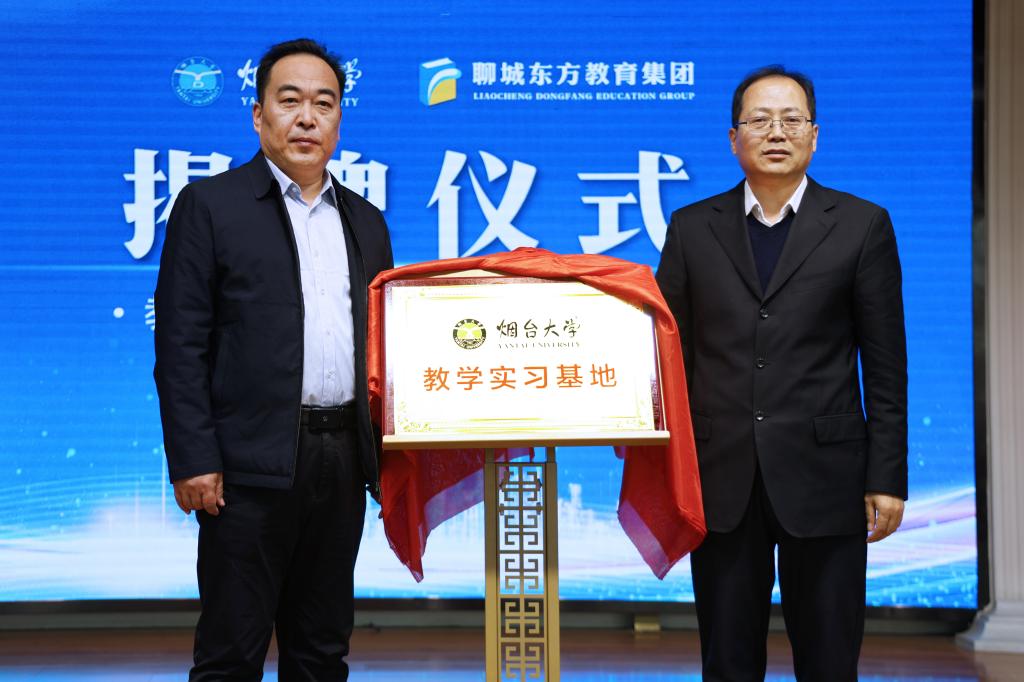 合作發展處(服務煙臺辦公室)處長孫旭濤與馬成虎代表學校和集團簽署戰略合作協議。教務處處長李慶忠與馬成虎、黨委學生工作部(處)部(處)長馮建與趙萬耘分別為雙方共建的教學實習基地及就業實習基地揭牌。此次合作,不僅為雙方建立長期穩定的合作關系奠定了堅實基礎,更體現了雙方教育理念的交融與互鑒。未來,煙臺大學與聊城東方教育集團將繼續秉持開放合作、兼容并蓄的精神,實現資源互補、智慧共享、攜手共進,共同為教育事業蓬勃發展注入強勁動力。