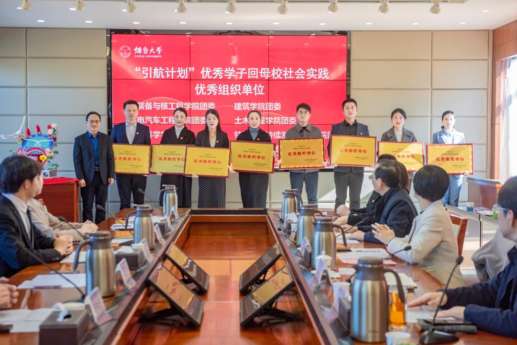 會上,校團委相關負責人宣讀了《關于表彰煙臺大學2025年“引航計劃”優秀學子回母校社會實踐活動優秀集體和個人的決定》,會議為獲得表彰的先進單位、團隊和個人頒發了獎牌和榮譽證書。