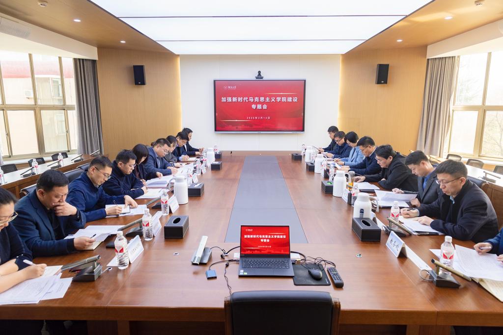 【本站訊】為深入貫徹落實習近平總書記關于新時代馬克思主義理論研究和建設工程、學校思政課建設的重要指示精神,進一步加強學校新時代馬克思主義學院建設,3月13日上午,學校召開加強新時代馬克思主義學院建設專題會。黨委書記盧國強出席會議并講話,黨委副書記白青,黨委常委、副校長馮素玲,黨委常委、組織部部長楊玉軍,黨委常委、宣傳部部長楊眾暉出席。學校有關部門主要負責同志及馬克思主義學院領導班子成員參加會議。會議由白青主持。