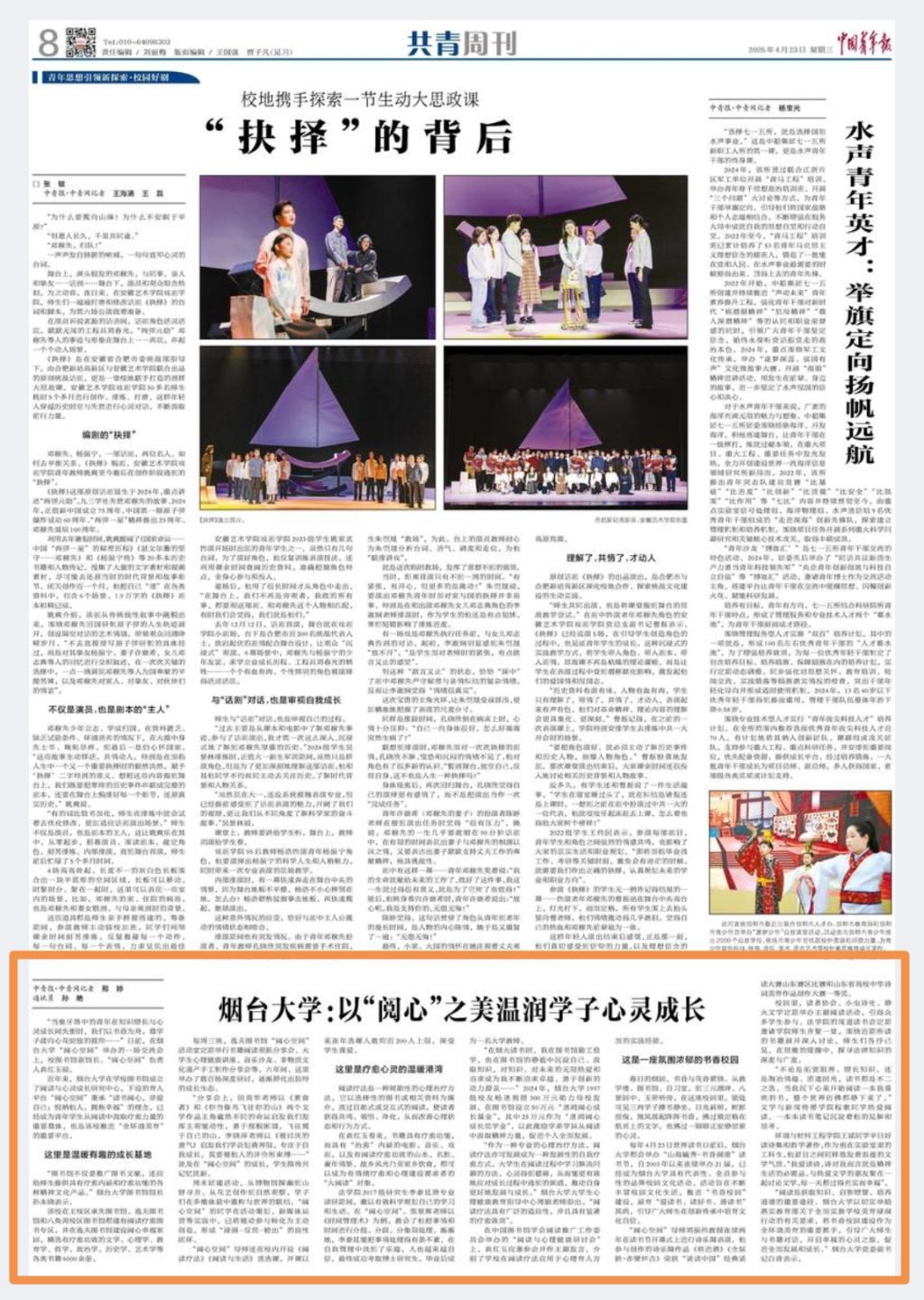 【本站訊】4月23日,世界讀書日之際,《中國青年報(bào)》08版以《煙臺(tái)大學(xué):以“閱心”之美溫潤學(xué)子心靈成長》為題,報(bào)道了煙臺(tái)大學(xué)將書香校園建設(shè)作為全環(huán)境美育重要抓手的經(jīng)驗(yàn)做法,現(xiàn)將原文轉(zhuǎn)載如下: