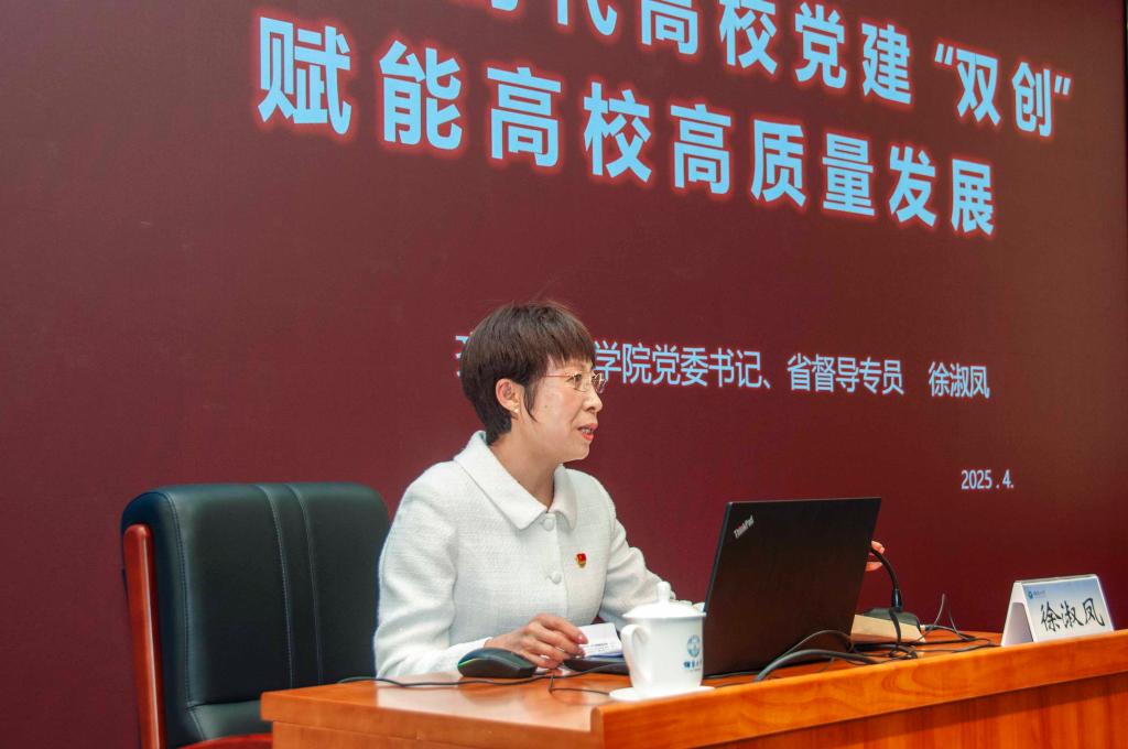 徐淑鳳以《以新時代高校黨建“雙創”賦能高校高質量發展》為題,圍繞新時代高校黨建“雙創”工作,從“中央對新時代黨的建設總要求、教育部對高校黨建工作的部署及新時代高校黨建‘雙創’項目申報、高質量黨建引領高校高質量發展、黨建工作的感悟與體會”四個方面,系統闡述了新時代高校黨建“雙創”工作的重要意義和經驗做法。報告既有對中央精神的深刻解讀,又有對黨建“雙創”申報要點的精準分析,既有鮮活案例的示范引領,又有對黨建與業務深度融合的實踐指導,對學校開展黨建“雙創”工作具有重要的指導意義和實踐價值。