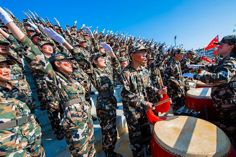 大會在激昂嘹亮的歌詠比賽中拉開帷幕。16支參賽隊個個精神抖擻、士氣高昂,展現出煙大學子奮勇爭先、積極進取的精神風貌。30個方隊邁著整齊矯健的步伐,以嚴整的軍容軍姿,依次走過主席臺接受學校領導及部隊首長檢閱。軍訓團的老師與同學們一同訓練并組成方隊參加分列式展示,展現全員全過程全方位育人實效。