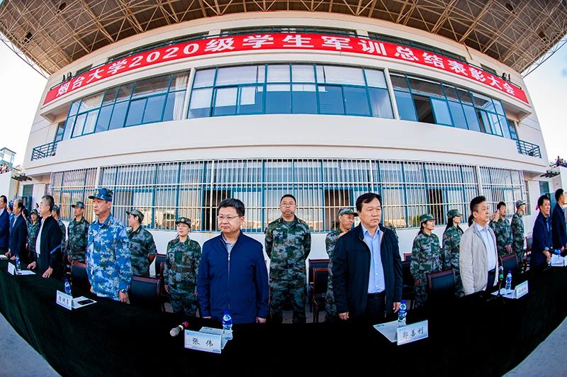 迷彩青春英姿颯爽,沙場點兵夢想起航。9月30日下午,學校在體育場隆重舉行煙臺大學2020級學生軍訓總結表彰大會。學校領導張偉、郭善利、孫祥斌、鄧昌亮、周勝良、郝曙光、王強、李合亮,軍訓工作領導小組全體成員出席大會。大會由副校長孫祥斌主持。中國人民解放軍海軍航空大學岸防兵學院政委陳健勇一行3人受邀參加總結表彰大會。