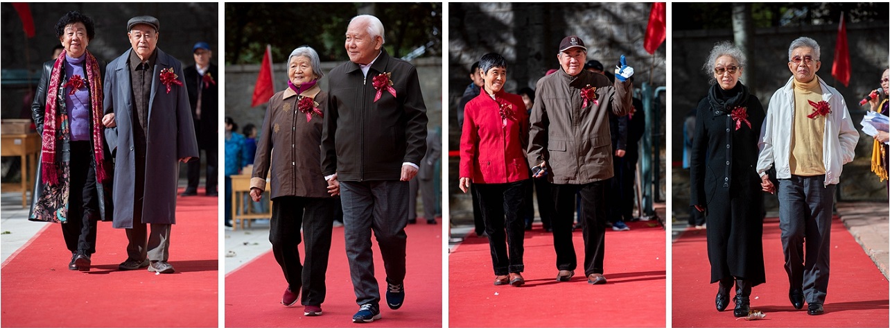 瀟灑秋容艷陽日,伉儷相伴情相牽。10月23日上午,在中國傳統節日重陽節即將到來之際,煙臺大學舉行“重陽—不一樣的九九”金婚慶典活動。伴隨著現場屏幕播放的從相識、相知到相伴的一幕幕美好瞬間,煙臺大學56對已相伴走過五十年的金婚老教師佩戴紅花、相互依偎著走過紅地毯,臉上洋溢著笑容,眼里滿是幸福。