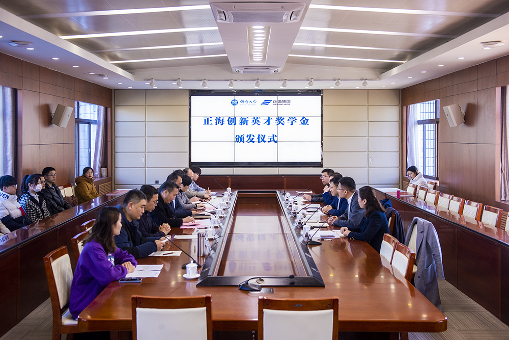 【本站訊】12月2日,煙臺(tái)大學(xué)“正海創(chuàng)新英才獎(jiǎng)學(xué)金”頒發(fā)儀式在育秀大樓316舉行。正海集團(tuán)黨委副書(shū)記、工會(huì)主席全杰,正海磁材黨委書(shū)記、總經(jīng)理李志強(qiáng);煙臺(tái)大學(xué)副校長(zhǎng)畢可志,黨委統(tǒng)戰(zhàn)部常務(wù)副部長(zhǎng)、教育發(fā)展基金會(huì)秘書(shū)長(zhǎng)李育華,機(jī)電汽車工程學(xué)院、化學(xué)化工學(xué)院等相關(guān)單位負(fù)責(zé)人出席頒獎(jiǎng)儀式。儀式由黨委學(xué)生工作部部長(zhǎng)杜昊主持。