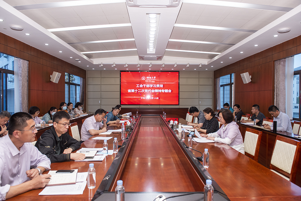 會議學習傳達了省第十二次黨代會精神和學校黨委書記張殿臣就進一步貫徹落實省第十二次黨代會精神提出的要求,并從悟創新理論偉力、強“兩個維護”自覺、守竭誠服務初心、開教育發展新局等四個方面闡述了學習貫徹省第十二次黨代會精神的重大意義,動員全校各級工會組織和廣大教職工會員把學習宣傳貫徹省第十二次黨代會精神作為重要政治任務,找準“圍繞中心、服務大局”的著力點和結合點,立足崗位、鼓足干勁,勇挑重擔,努力提升工會(婦委會)工作成效。