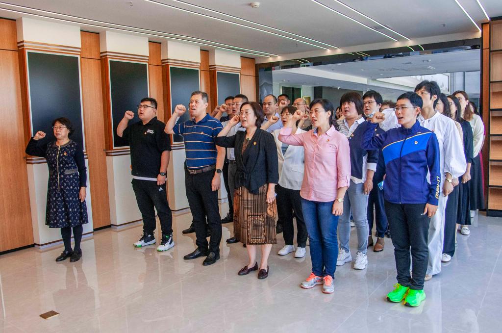 活動伊始,校工會組織基層工會主席和女工委主任面向黨旗莊嚴宣誓,重溫入黨誓詞。