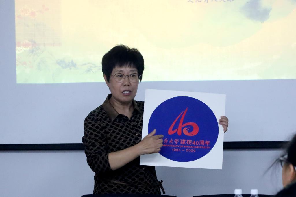 課堂上,周學玉詳細介紹草編的起源、特點和編織技巧,闡明草編藝術作為中華民族傳統手工藝術的重要組成部分,承載著厚重的文化底蘊與深厚的民族情感,蘊含著獨特的“指尖”技藝魅力。在互動環節中,周學玉指導現場學生在卡紙上寫字描畫,把玉米皮編織成布局疏密、顏色明暗、形狀凸凹相交相融的手工藝品。周學玉還指導學生們在一編一剪中制作煙臺大學建校40周年標識草編作品,為學校40周年校慶增添濃厚的文化氛圍。