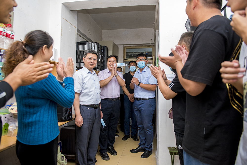 “同學之間要和睦相處,共同進步,在煙臺大學要增長學問、奮發成才!”“孩子來到煙大,家長們就放心吧!”在八號樓宿舍和九號樓宿舍,張偉、郭善利一行前來看望剛剛報到完畢的同學,問候新生家長,叮囑同學們要滿懷期待、擁抱新生活,加強對學院和本專業的了解,在煙臺大學放飛青春夢想。學校領導的親切問候贏得了同學們的陣陣掌聲。學校領導還參觀了學生第十餐廳,叮囑相關人員一定要做好學生的疫情防控、醫療保障和飲食安全工作。